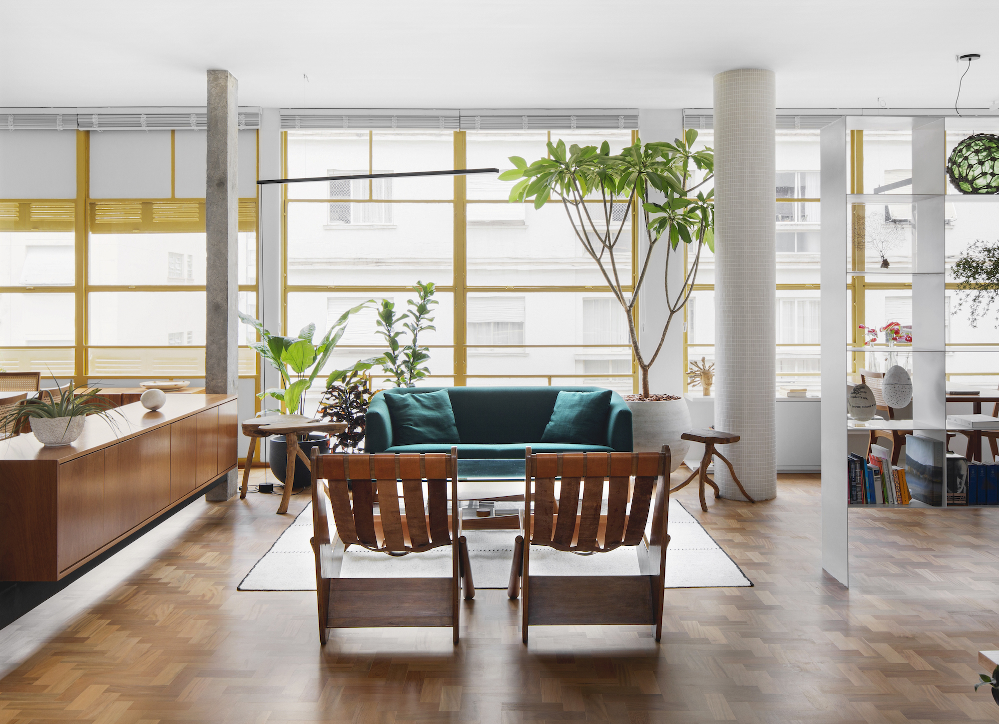 Na reforma de um apartamento no Edifício Louveira, a arquiteta Ana Sawaia destacou as características arquitetônicas do prédio, construído em 1.946, em Higienópolis, São Paulo