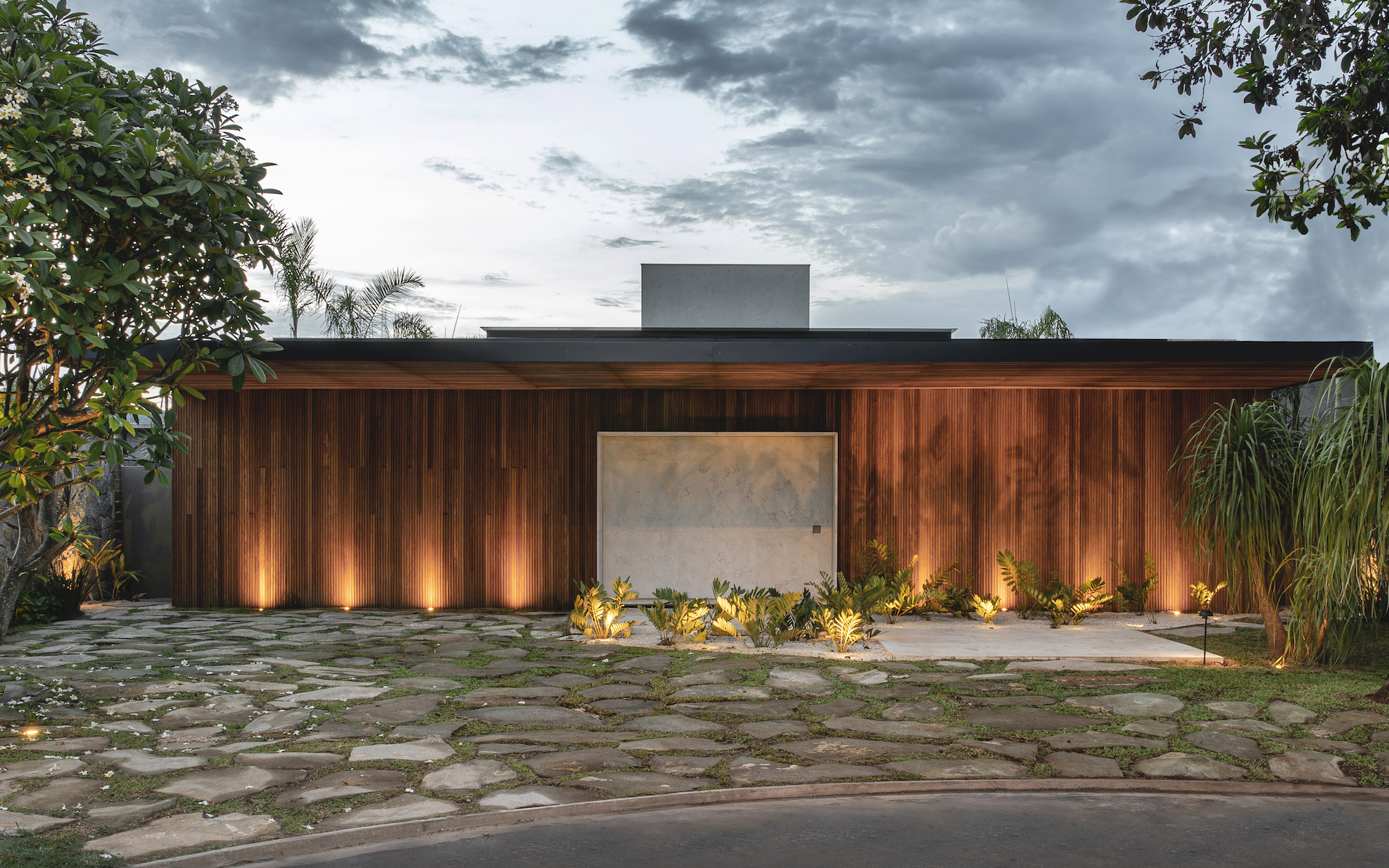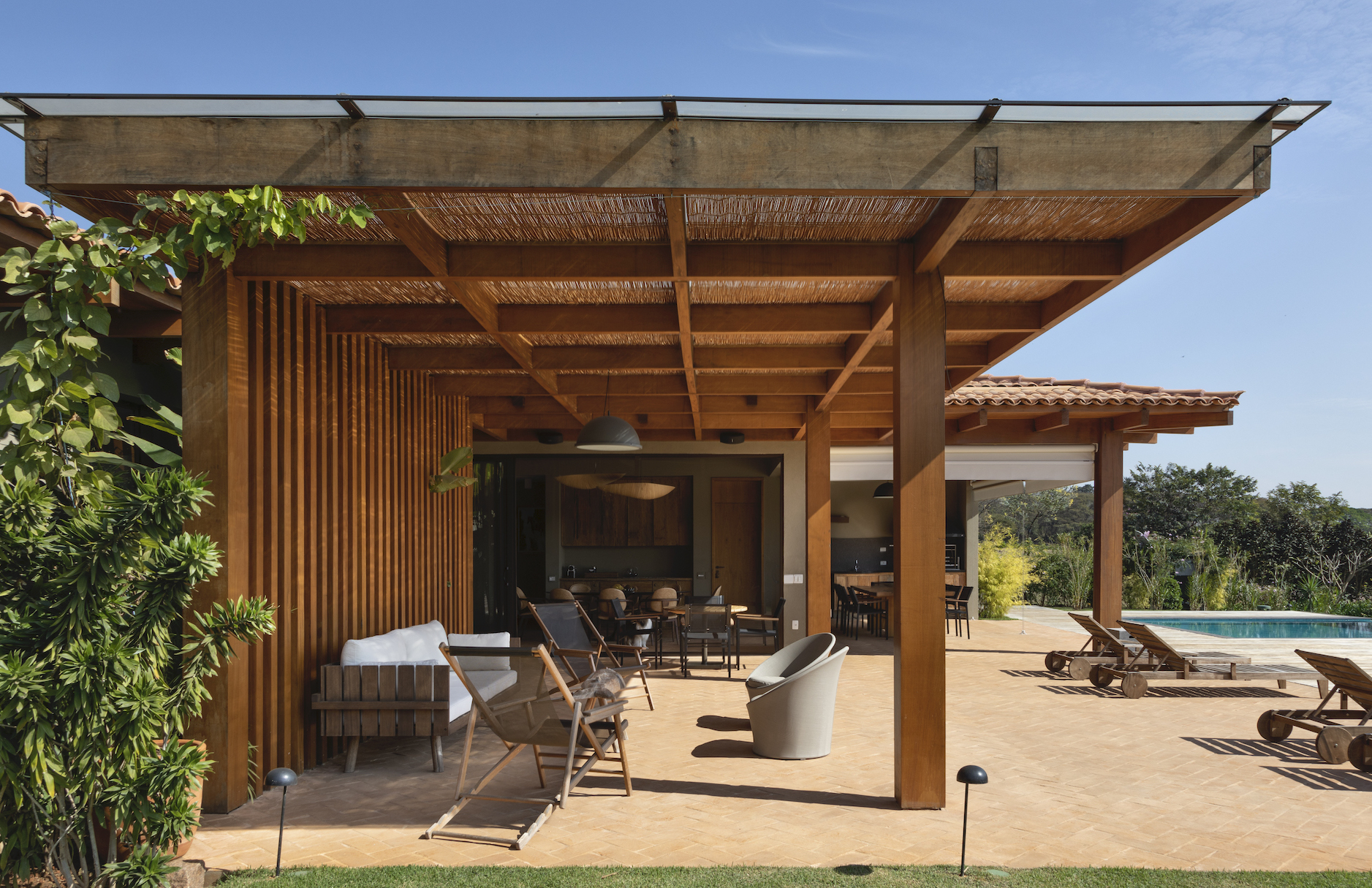 A luz valoriza os materiais naturais que predominam na arquitetura e na decoração desse projeto do escritório FM+ Arquitetos, no interior de São Paulo