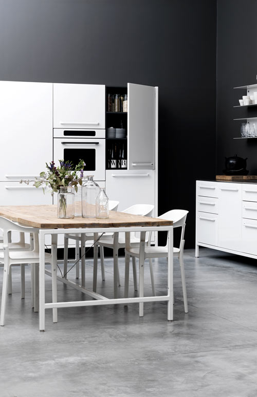 A mesa está disponível com a tábua em duas cores: preto fosco ou brilho branco, e é vendida na loja da Vipp em Copenhague.