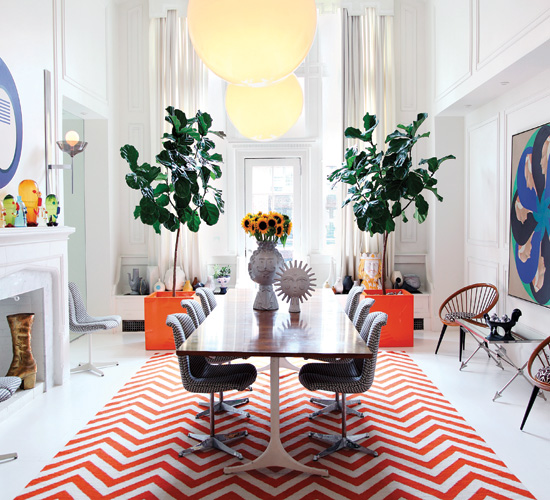 O papel de parede também está de volta, principalmente os estampados e geométricos, com cores fortes como o laranja. As estampas gráficas são o retorno da década de 70.