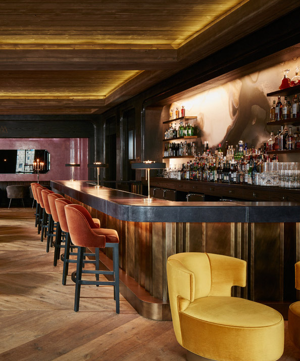 Com piso de madeira espinha de peixe, lustre desenvolvido especialmente para o espaço e poltronas club chairs, o restaurante tem decoração chique e atmosfera Art Deco