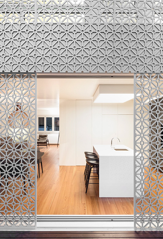 Um painel vazado, inspirado na azulejaria portuguesa, é o destaque do projeto de reforma dessa casa assinado pelo arquiteto português João Tiago Aguiar