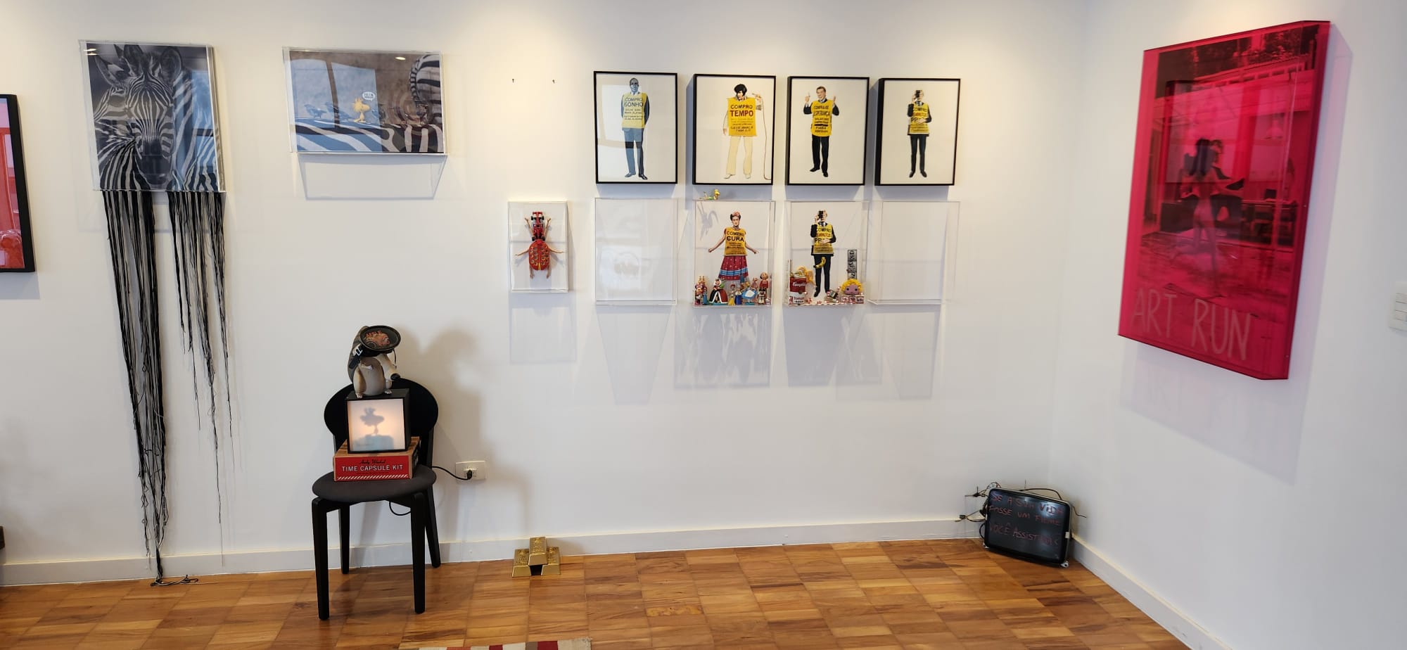 Uma galeria de arte recebe os visitantes na entrada do apartamento, projeto da arquiteta Paola Ribeiro em São Paulo