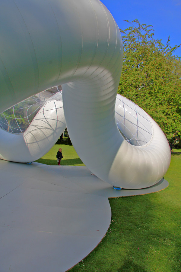 No lindo jardim deste museu em Londres, uma escultura interativa celebra os valores da paz com curvas e encontros