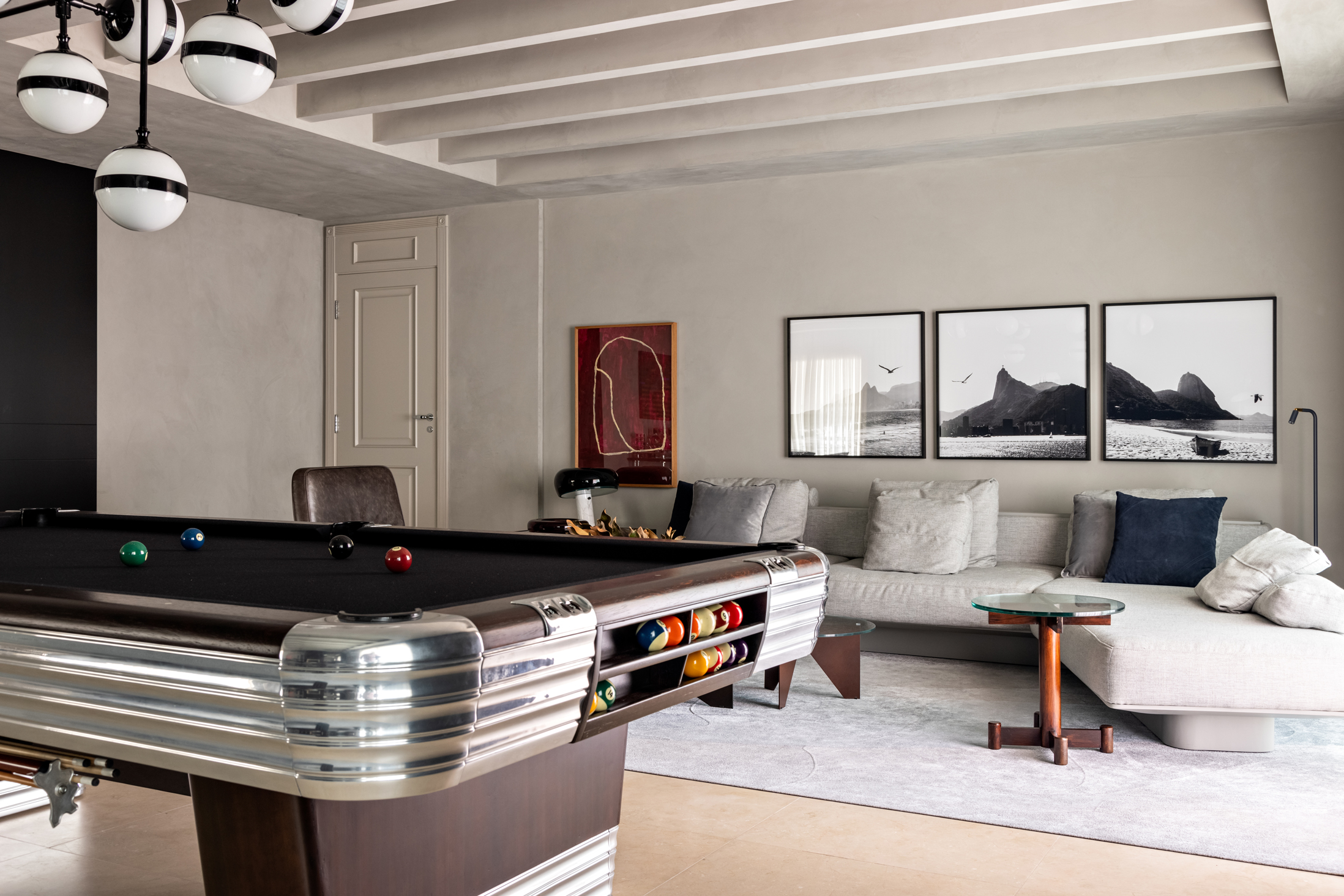 Para atender a um pedido do proprietário o arquiteto Diego Revollo decidiu que a mesa de bilhar seria o foco da decoração.