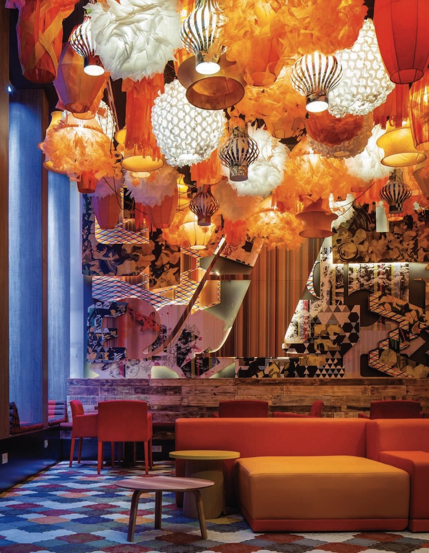 O primeiro foi inaugurado em Londres em 1995. A ele se seguiram outros em Copenhagen, Hamburgo, Veneza, Dublin e Barcelona – o que você vê nestas fotos, com suas 300 lanternas iluminando o lobby e dando a ele um ar festivo.