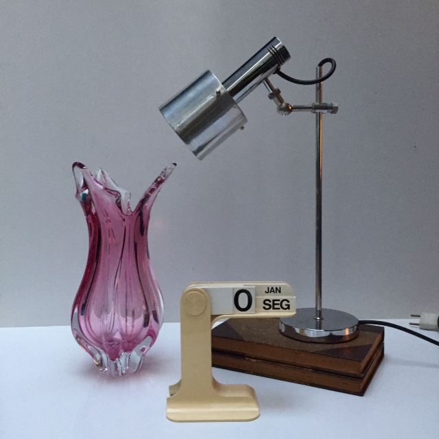 Foto home: Luminária escritório dec 60, vaso alemão Germann e calendário Danese, Milão 1967