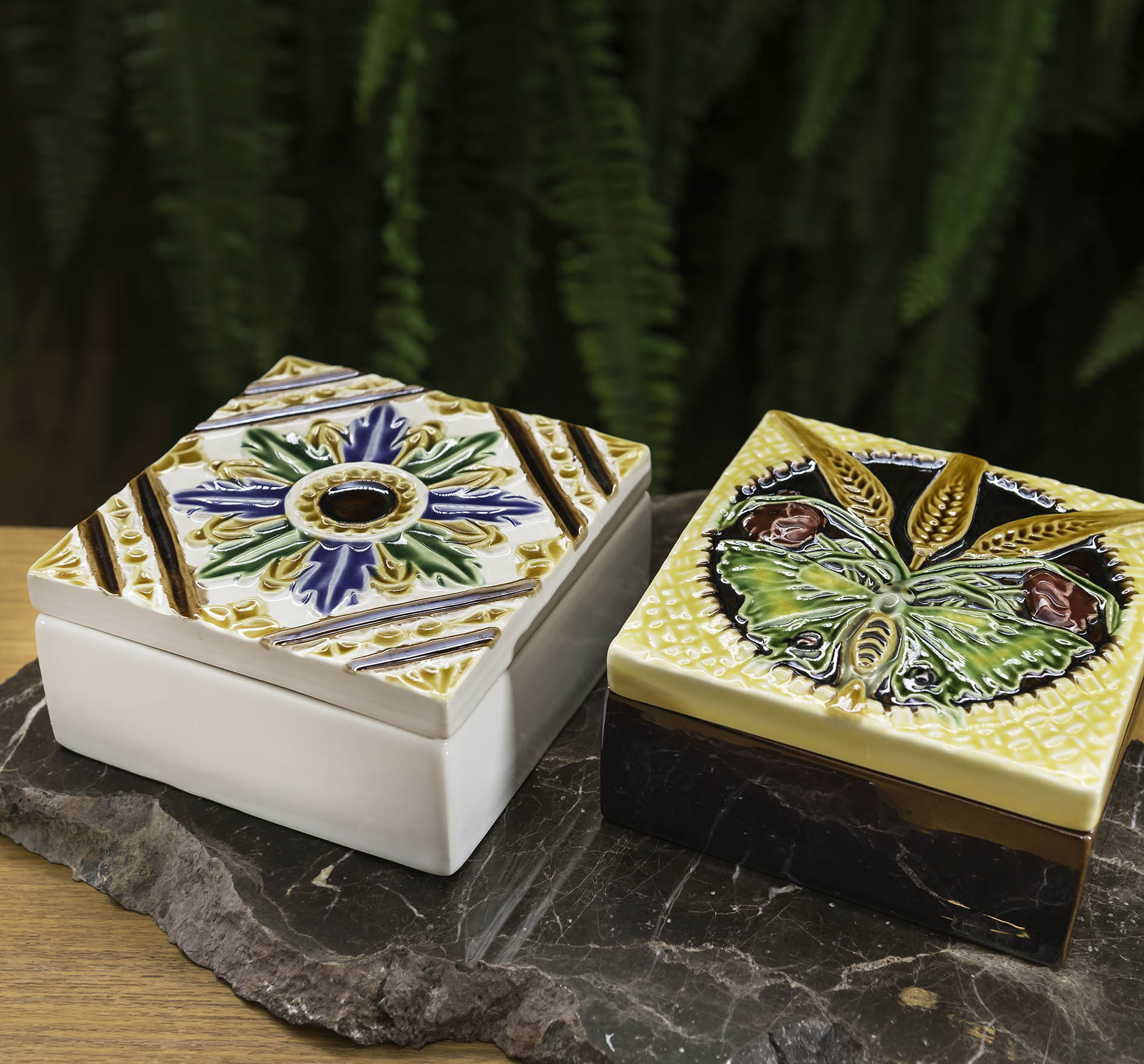 Stella Crissiuma selecionou lindas caixas de ceramica de Raphael Bordallo Pinheiro