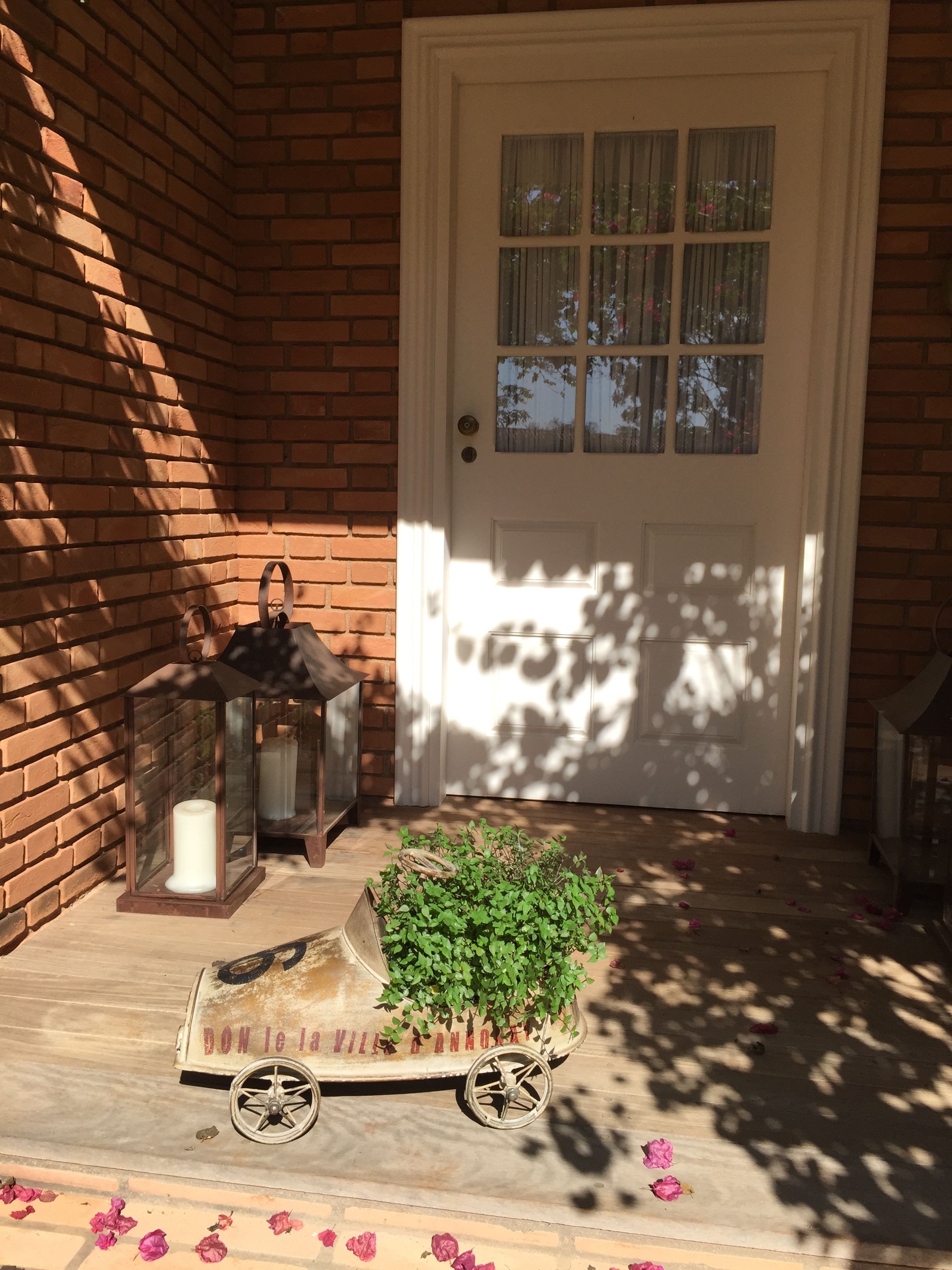 O carrinho de ferro da Stella Crissiuma é decorativo e pode ser usado como cachepot!