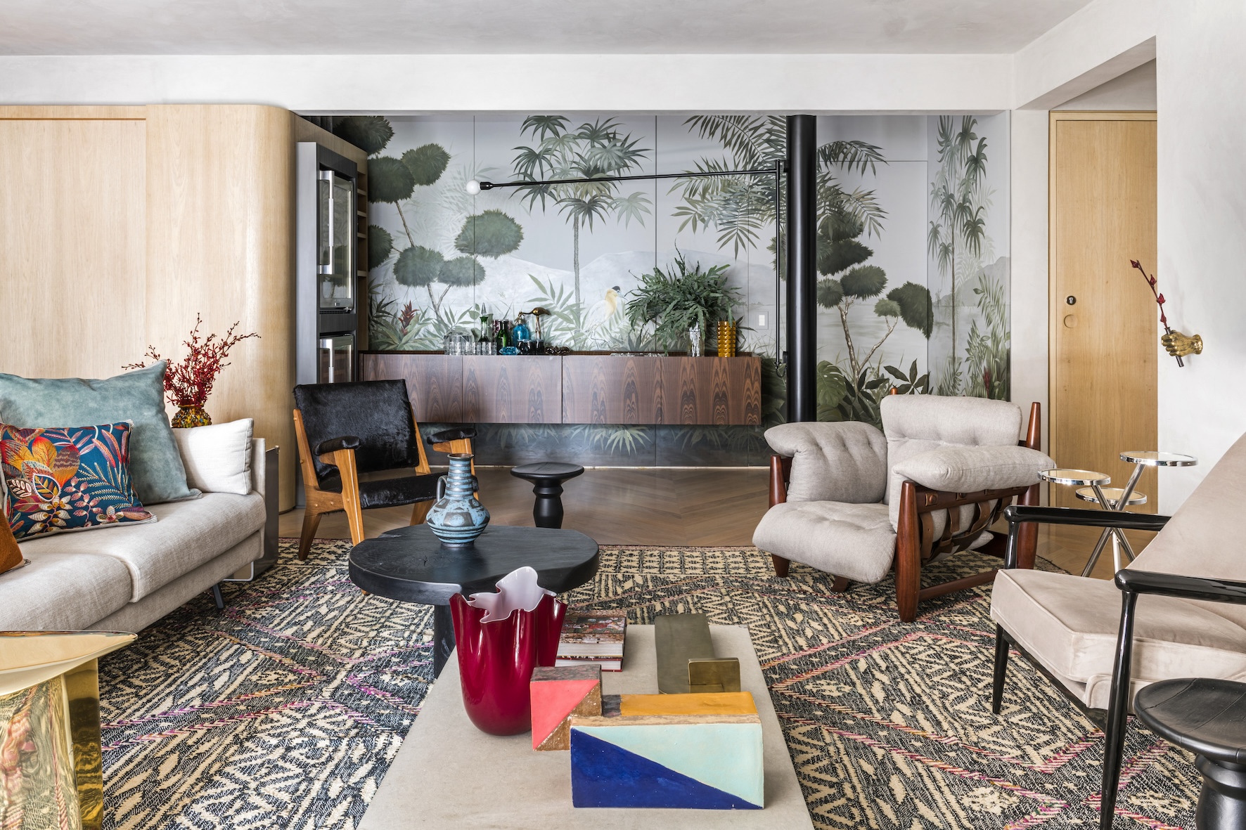 A pintura em trompe l’Oeil é um dos destaques no projeto de reforma desse apartamento. O casal jovem, com filhos pequenos, confiou ao escritório do arquiteto Diego Revollo a missão de modernizar o imóvel com mais de trinta anos.