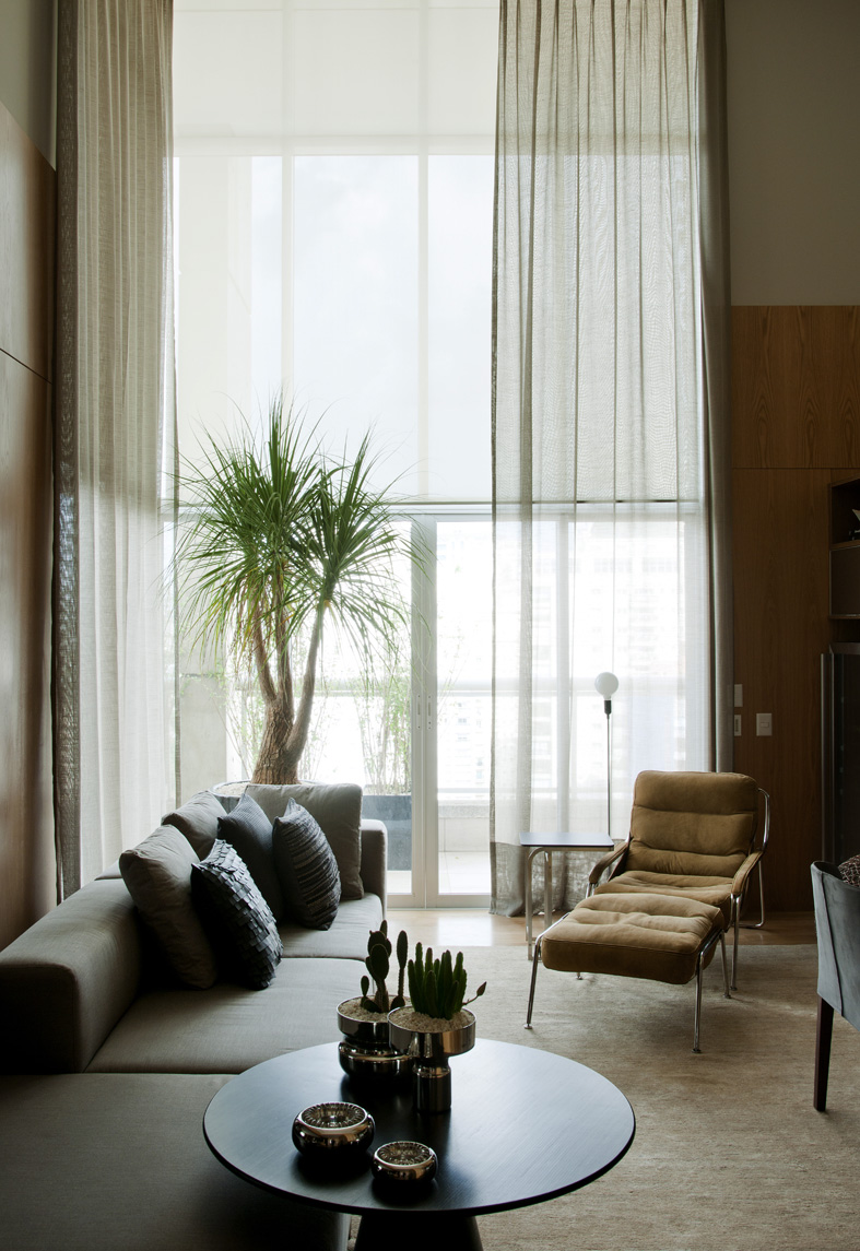 A arquiteta Cristina Barbara assina o projeto desse apartamento para um homem solteiro. Ambientes de estar, jantar, cozinha, biblioteca e home theater estão em um espaço único, multiuso, para facilitar o convívio.