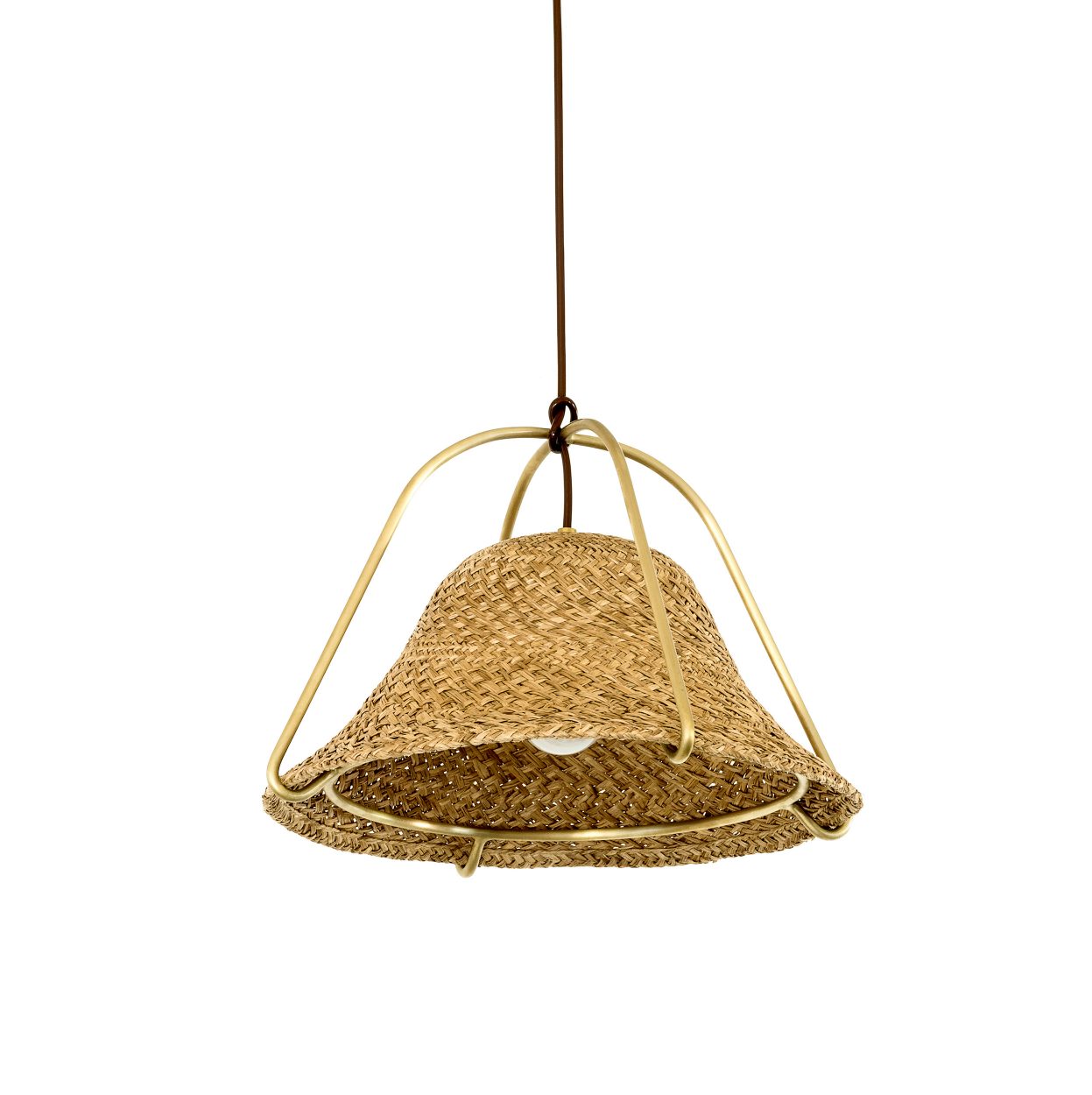 Nessa edição da Maison&Objet apresenta uma coleção de objetos e luminárias que utilizam metal dourado com folha de bananeira trançada, em uma criativa união da cultura tradicional brasileira com olhar contemporâneo.