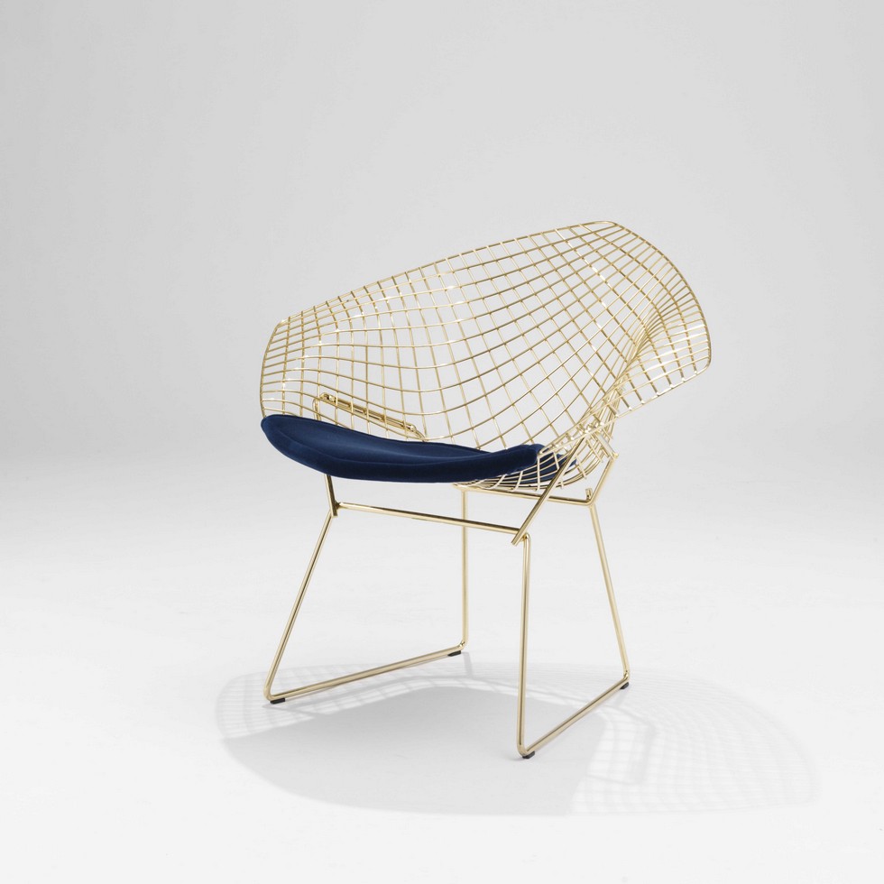 Para comemorar o centenário de Harry Bertoia, a Knoll vai lançar, durante o Salão do Móvel de Milão 2016, uma edição com acabamento em ouro 18 quilates da cadeira Bertóia.