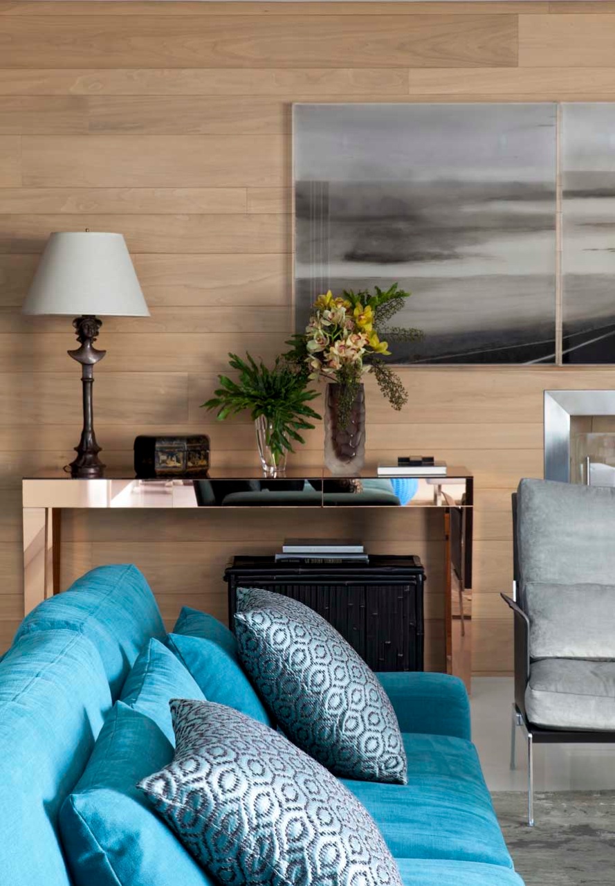 No projeto, criado por Marco Viterbo, em que tudo é tátil, a sala foi o ponto de partida. Ou melhor: o tom de azul, escolhido pelo arquiteto para pontuar e criar uma unidade em toda a ambientação.
