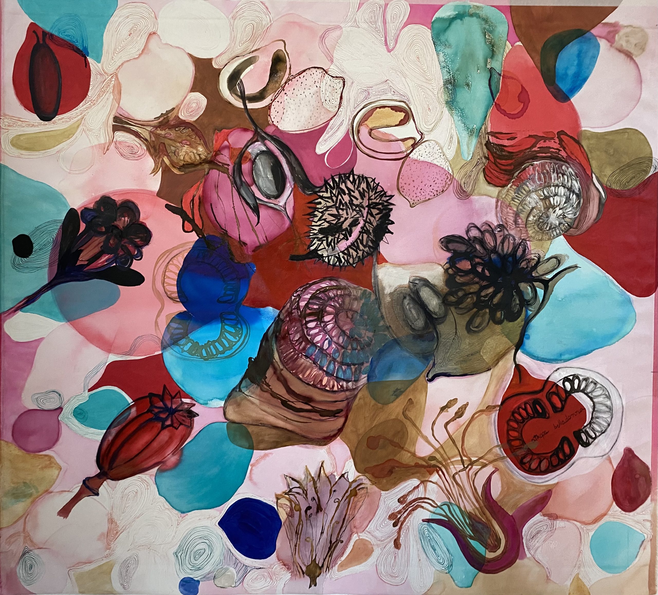 Já no espaço da Rua Harmonia, a artista Ana Amélia Genioli, apresentará – com curadoria de Tálisson Melo – uma série de 20 novos trabalhos que surgiram de um estudo a obra “Metamorfoses”, do filósofo italiano Emanuele Coccia. “O trabalho de transformação sempre esteve presente na minha produção. As técnicas foram mudando mas esta pesquisa existe desde 1998”, explica a artista de 61 anos que possui trabalhos em coleções privadas e institucionais, tais como TV Cultura e SESC. Nesta exposição a transformação permanente e sem fim fica evidenciada e é acompanhada por pequenos casulos pendurados pelo salão, criados pela tribo indígena colombiana Kogi para fazer parte da cenografia.