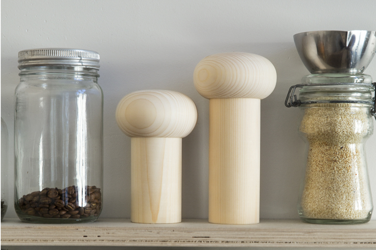 Já os pequenos Chef são recipientes de madeira versáteis, que lembram pequenos cogumelos, e são projetados para encaixar perfeitamente nas mãos ao realizar movimentos para abrir e fechar.