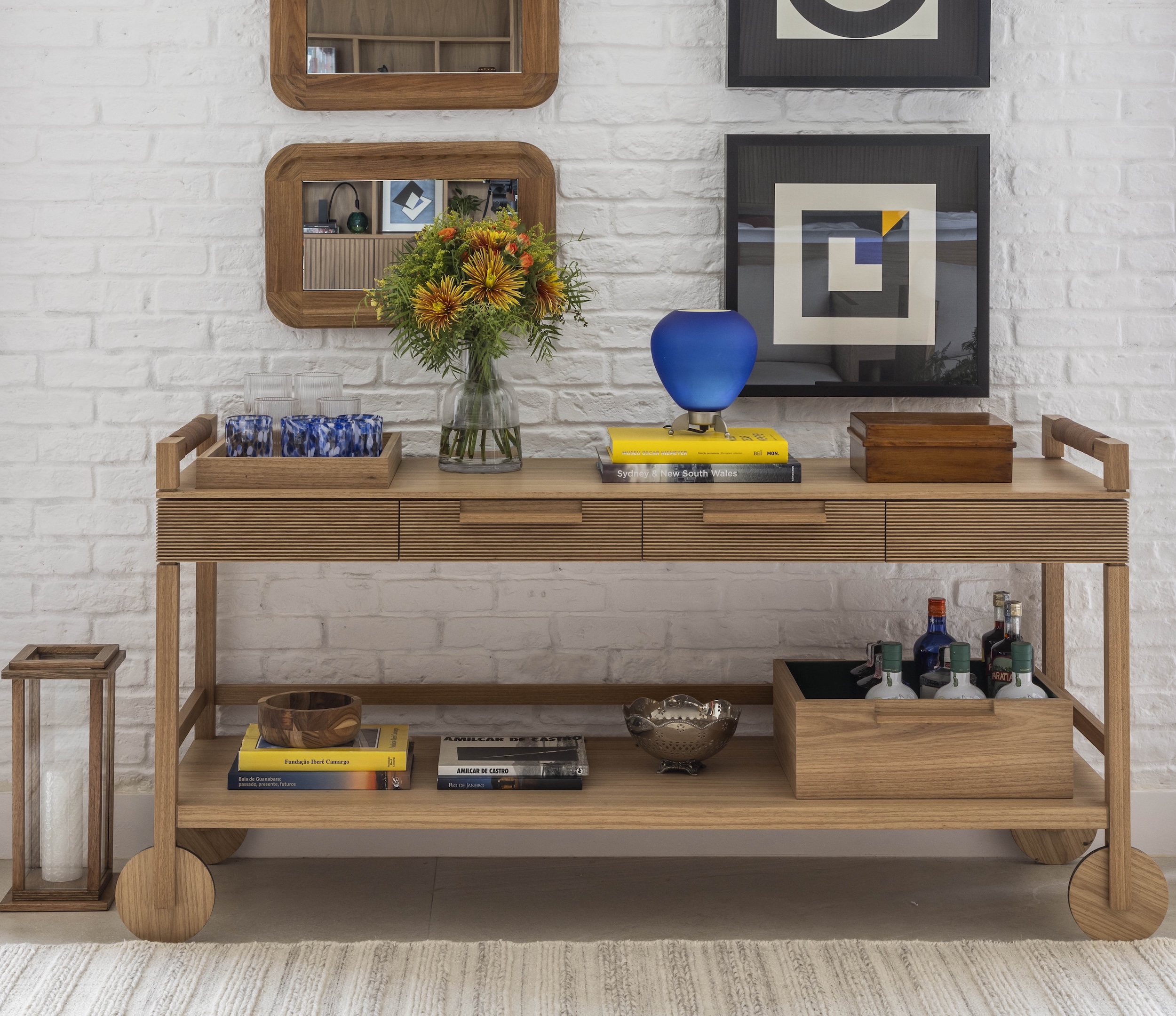 “A coleção chega ao mercado com reconhecimento internacional: às vésperas do lançamento, o carrinho-bar Resedá conquistou o iF Design Award 2026, um dos mais prestigiados do setor, na categoria mobiliário. Não por acaso, a peça é o destaque da nossa vitrine”, revela João Caetano, do Arquivo.
