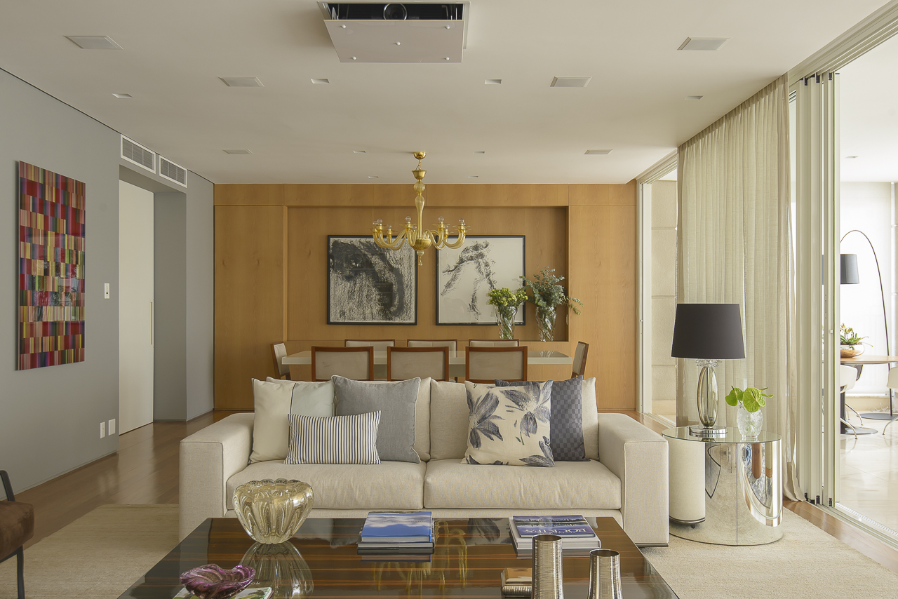 À primeira vista, é um espaçoso, belo e iluminado apartamento. Olhando mais atentamente, percebe-se que tudo resulta de um projeto minucioso que garantiu uma ótima circulação, uma varanda integrada ao estar – mas sem deixar de demarcar seu espaço – e muito conforto.
