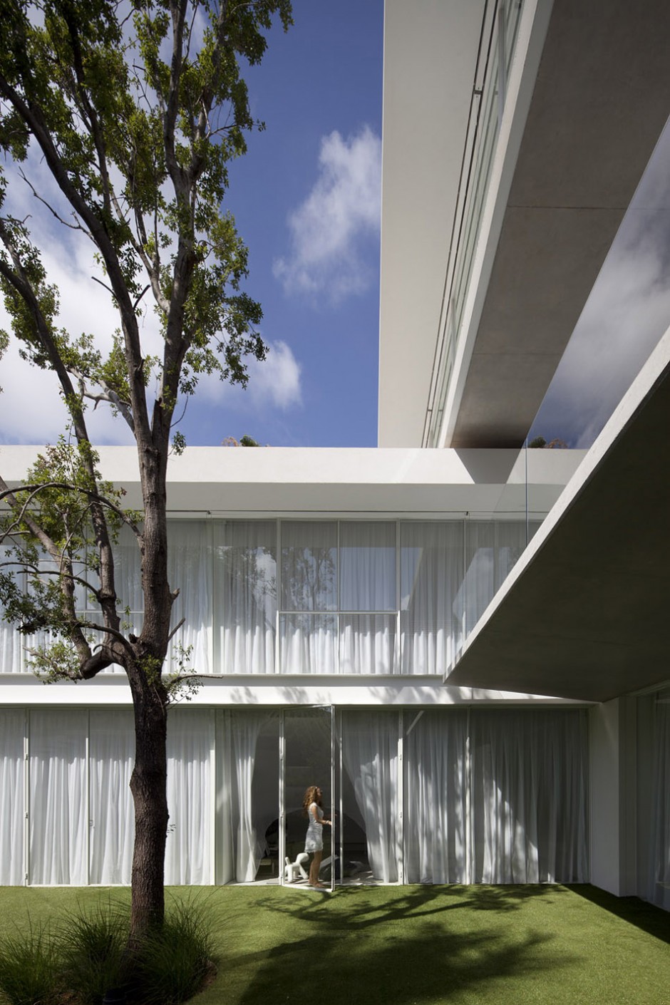 Uma das ideias mais interessantes da Ramat Hasharon House é o efeito causado pelo desnível entre os jardins. Projetada pelo escritório israelense Pitsou Kedem Architect, sediado em Tel-Aviv, a casa teve o terreno da escavado três metros na frente.
