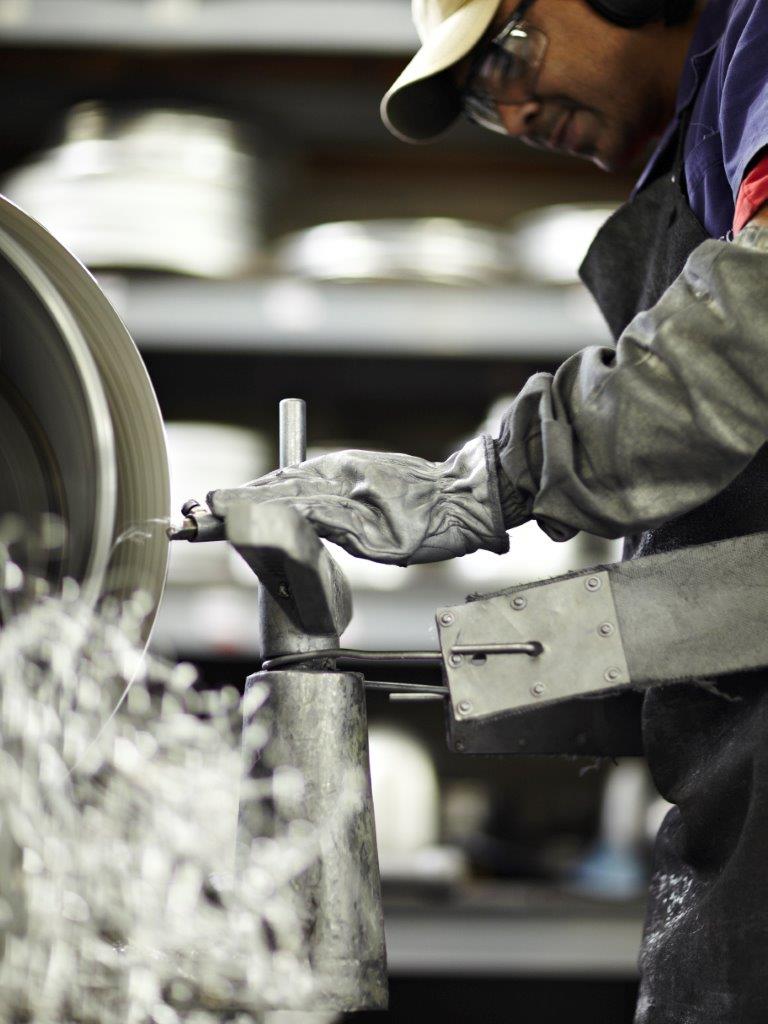 O empresário João Torres, marido de Eneida, é o guia que dá ao grupo todas as explicações – e elas ficam mais intensas no ponto alto da visita: o torno de repuxo, onde um disco de alumínio, latão ou cobre é moldado pelo repuxador em um modelo de ferro fundido ou de madeira, dando forma aos refletores, estruturas e bases das luminárias.