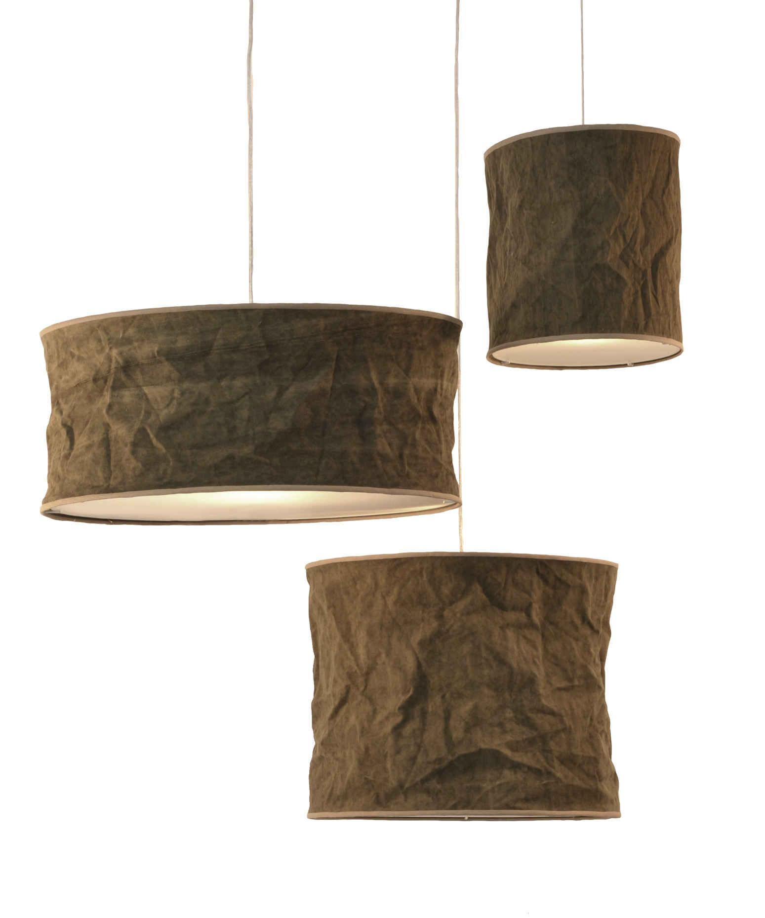 Cristiana Bertolucci Estúdio, que desenvolve produtos para iluminação, acaba de lançar o pendente Petra, de lona, que recebe um tratamento especial, criado pela designer, que produz um visual amassado e despojado.