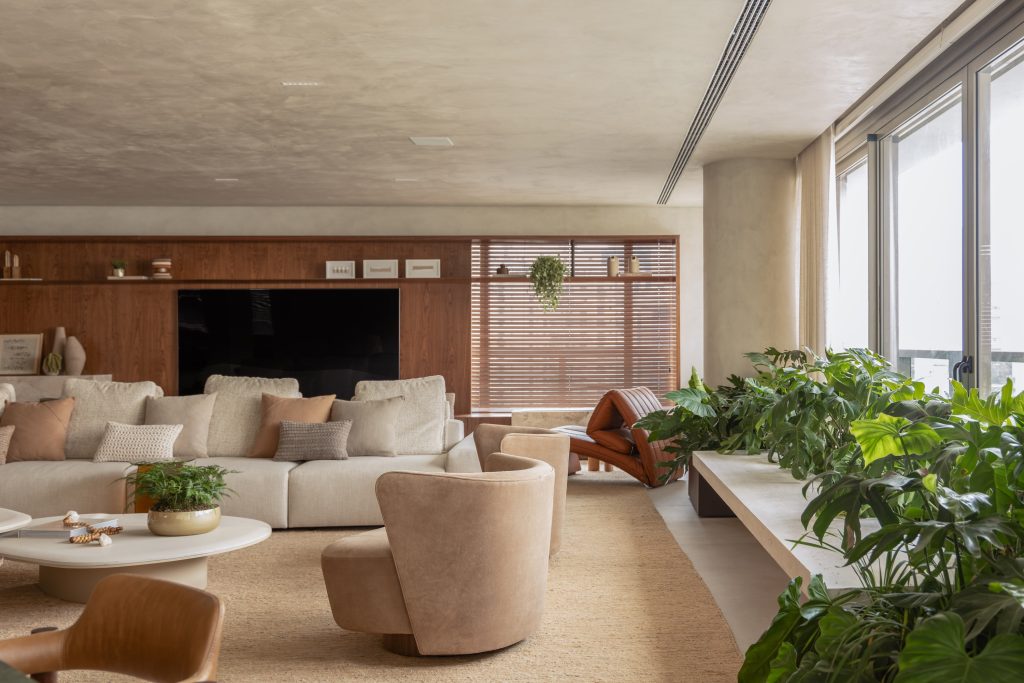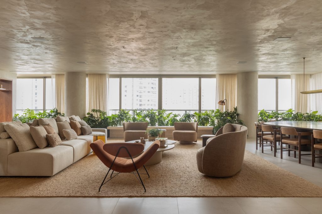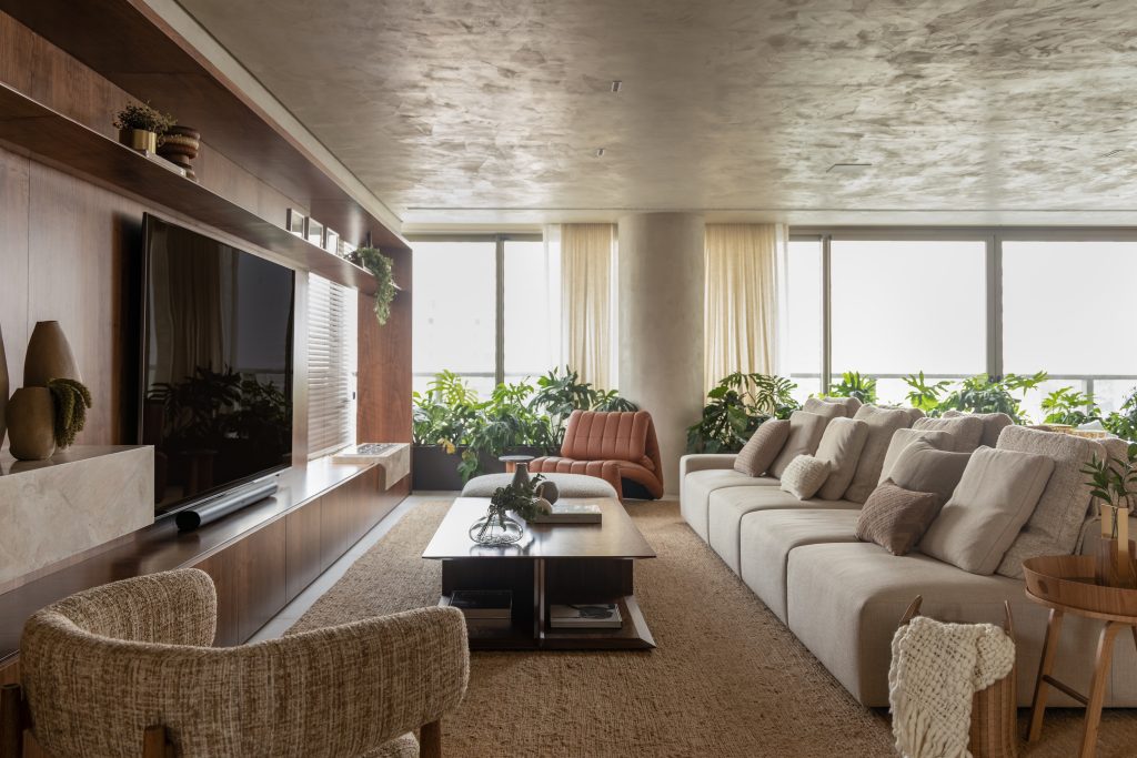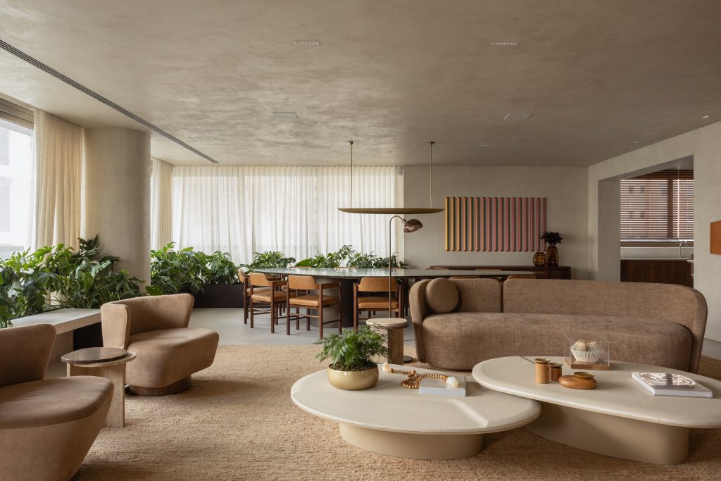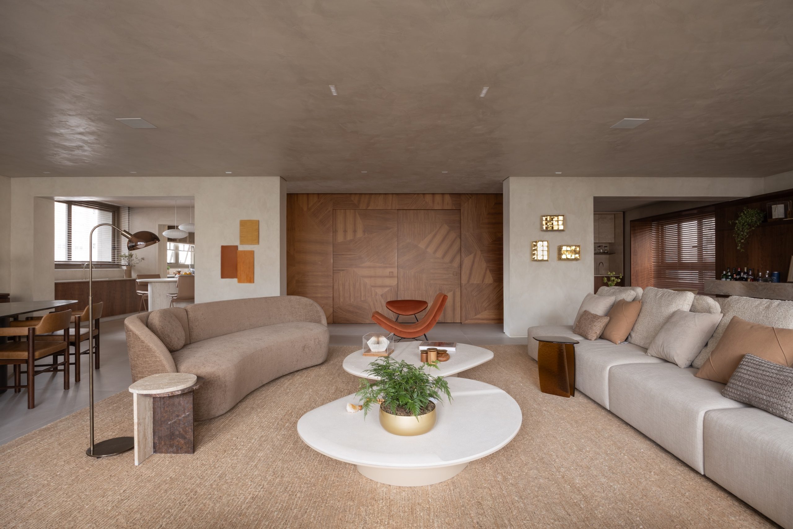 Foram oito meses de projeto e doze meses de obra. Como principais destaques Filipe cita, em relação à arquitetura, a amplitude espacial e a integração dos ambientes. Já o grande mix de tons neutros e texturas, com alguns highlights entre as peças – como a poltrona de sede e as mesas laterais da Suite Design – são destaques na decoração.