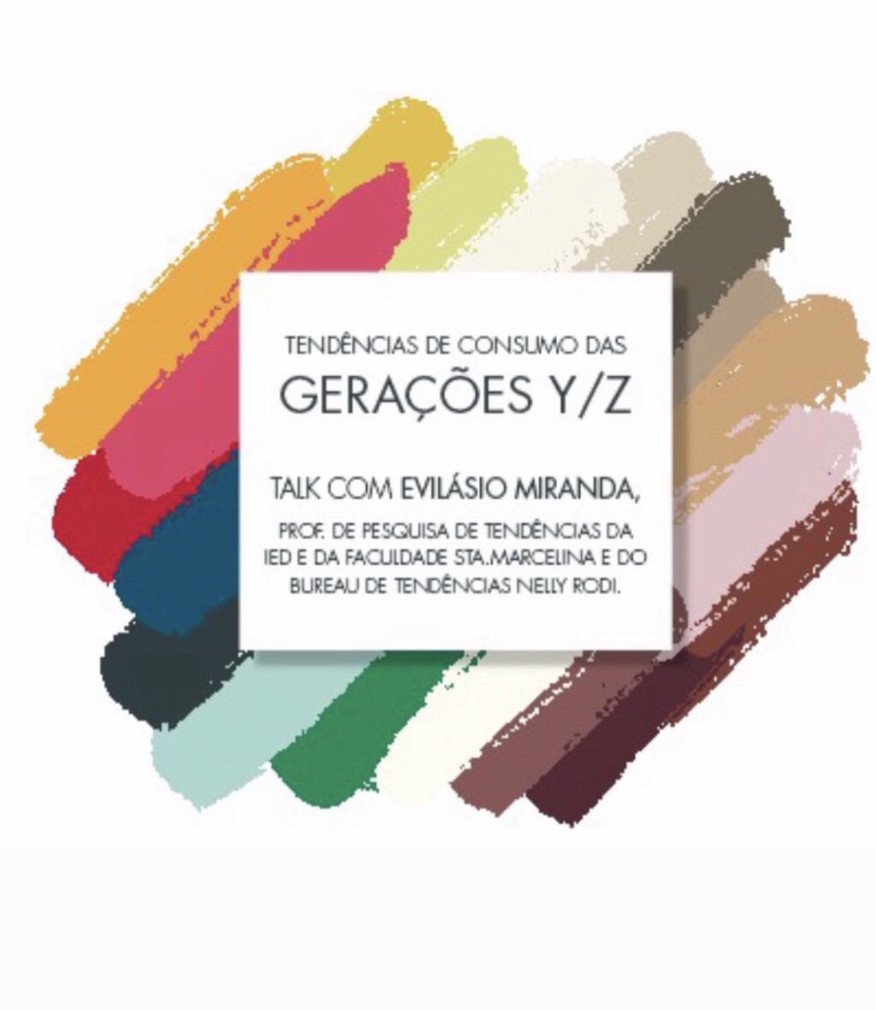 Nessa edição o tema do Talk será Tendências de consumo das gerações Y/Z com Evilásio Miranda, professor de pesquisa de tendências do IED, da Faculdade Sta Marcelina e do Bureau de tendências Nelly Rodi.