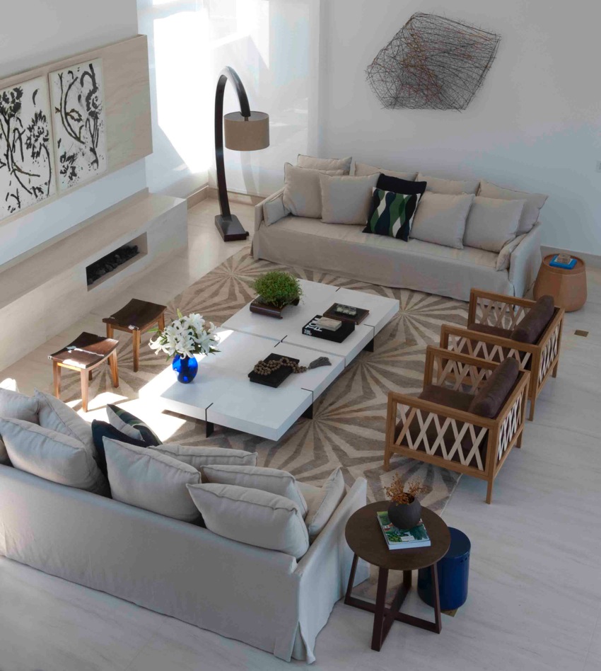 Pé-direito duplo, luz natural abundante e ambientes fluidos na casa projetada por Deborah Roig