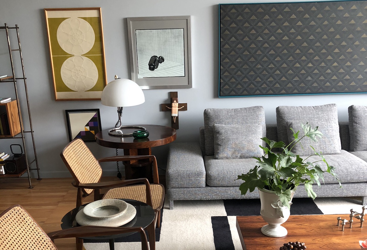 O arquiteto Antonio Ferreira Junior e seus três gatos moram num apartamento dos anos 60 decorado com móveis vintage em Higienópolis, São Paulo.