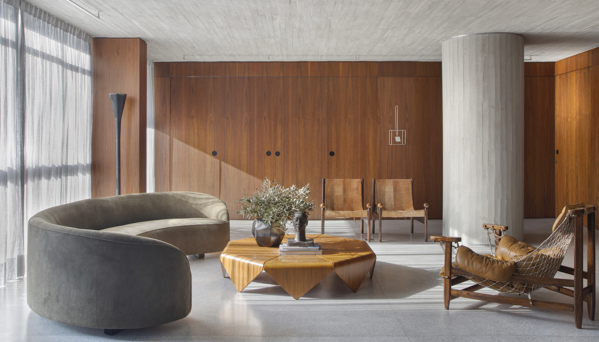 O apartamento da década de 70 teve a arquitetura brutalista potencializada pelos arquitetos Bruno Carvalho e Camila Avelar, da BC Arquitetos