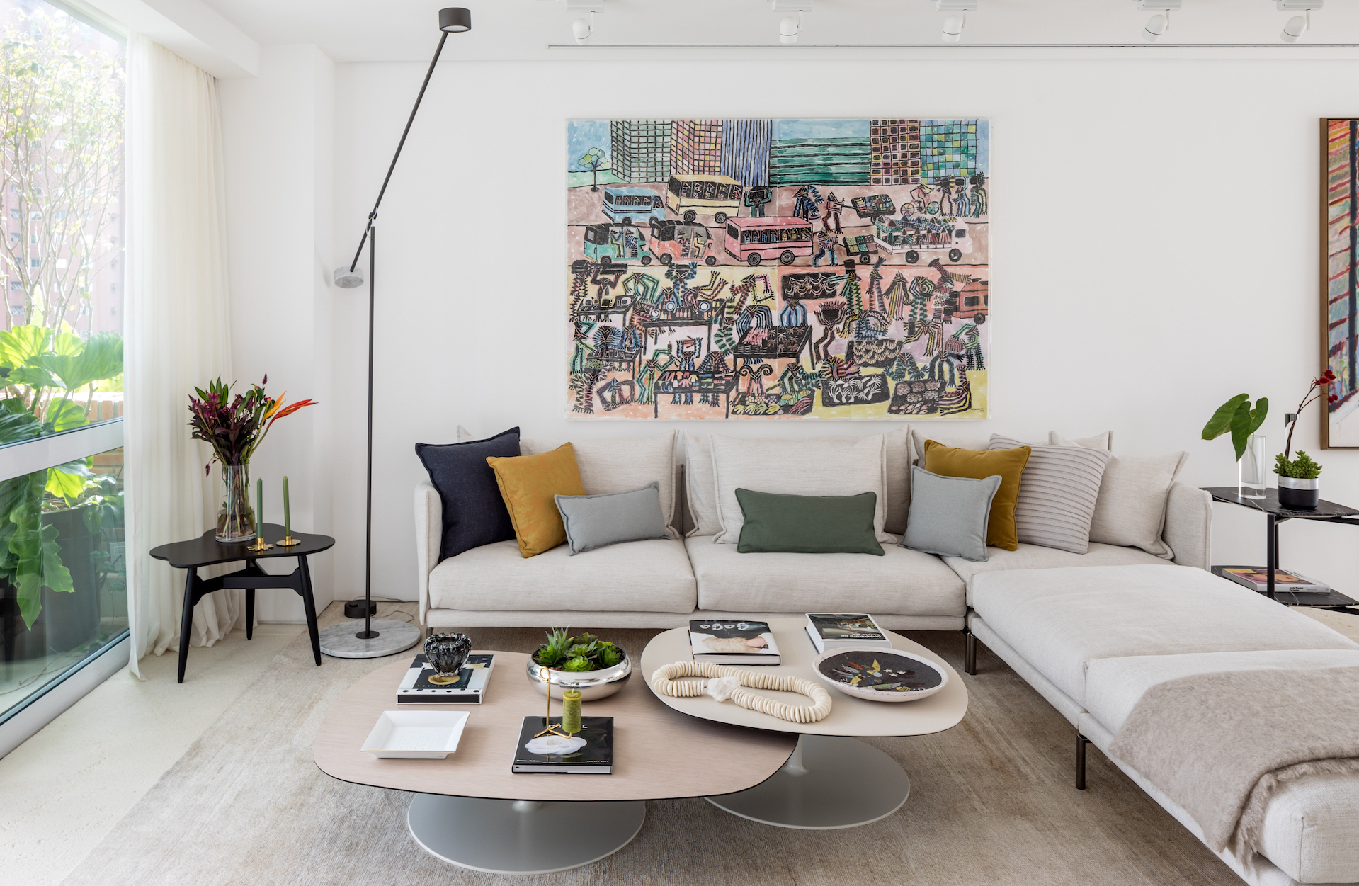 Cores claras, arte e muita leveza para a cliente da Tria Arquitetura em nova fase de vida
