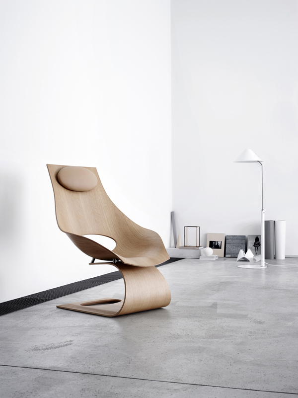 Escultural e confortável, a cadeira sonho é produzida a partir de um único material e parece flutuar, suave, como os projetos de arquitetura de Tadao Ando.